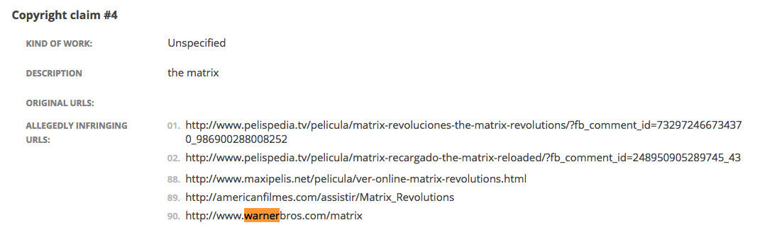 Ešte zaujímavejšie ale je, že tento problém sa im nestal po prvýkrát! S podobnou záležitosťou sa Warner Bros. stretli v minulosti, keď v zozname stránok obsahujúcich copyright figurovali linky pre známe filmy, ako sci-fi klasika – The Matrix alebo romantická dráma – The Lucky One.