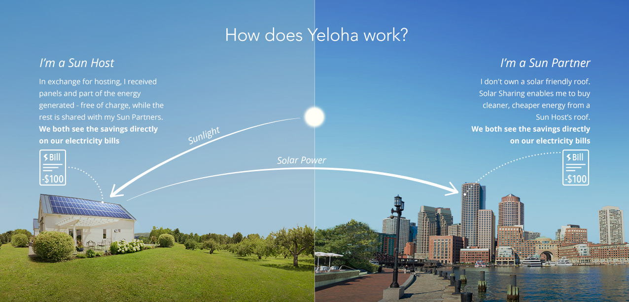 Pre šťastnú prvú stovku zákazníkov je inštalácia panelov úplne zadarmo, navyše nezaplatia ani za využívanie energie. Yeloha chce získavať peniaze podobne ako AirBnb či Uber, teda z malých poplatkov pri každej transakcii. Rosner hovorí, že firma si vybrala Massachusetts pre priaznivé regulácie v oblasti solárnej energie, veľa talentov v meste a komunitný zmysel. Ďalšie plány firmy vedú naprieč juhom USA, cez tzv. “Sun Belt”.