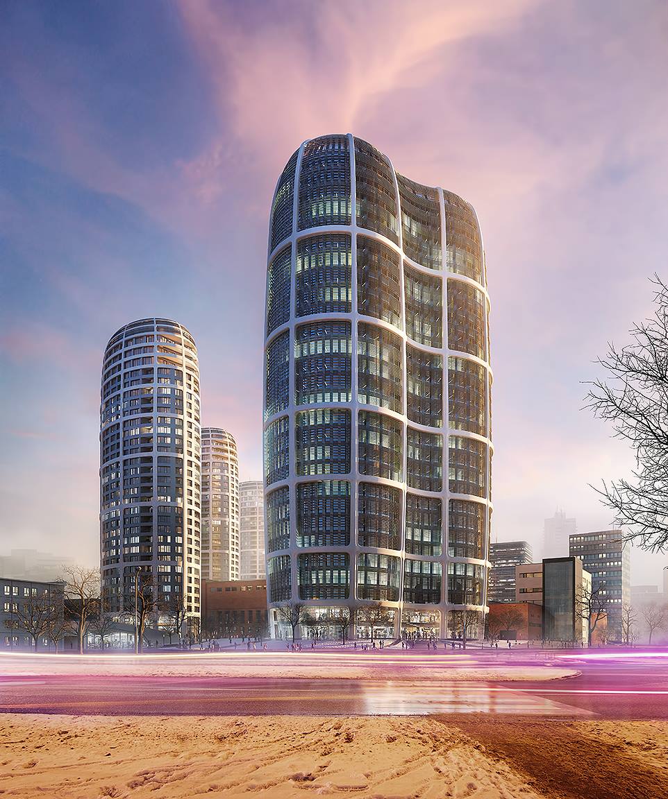 Súťaž pred desiatimi rokmi vyhral návrh svetoznámej architektky Zahy Hadid, kktorá navrhla komplex pozostávajúci zo štyroch výškových budov. Prvé tri rezidenčné veže sú kompletne dokončené. „Na trh priniesli dokopy 792 bytov, ktoré sú už plne vypredané. Súčasťou projektu sú aj dve kancelárskej budovy,“ uvádza developer.