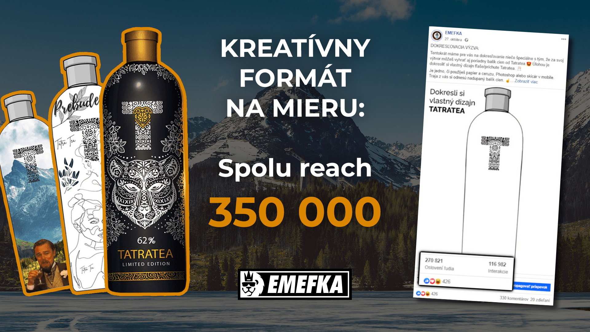 Po niekoľkých mesiacoch sme nasadili aj custom kreatívne formáty s cieľom ešte viac maximalizovať reach a engagement. Vedeli sme, že značku Tatratea u nás publikum vníma veľmi dobre, na rad preto prišla dokresľujúca výzva, ktorú sme predostreli komunite. Práve tá je v prípade Emefka veľkou výhodou – len málokde nájdete toľko kreatívnych a trefných komentárov.