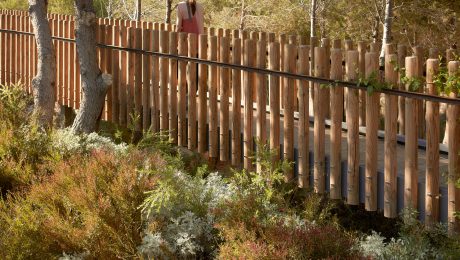 Žiaci neprichádzajú do školy cez klasickú bránu, ale cez lesnú cestu na drevených lávkach, ktoré im dávajú možnosť vnímať okolie skôr, než vstúpia do tried. Tento postupný prechod z mestského do prírodného prostredia minimalizuje pocit odcudzenia a naopak, podporuje v deťoch prirodzenú zvedavosť a cit pre priestor.