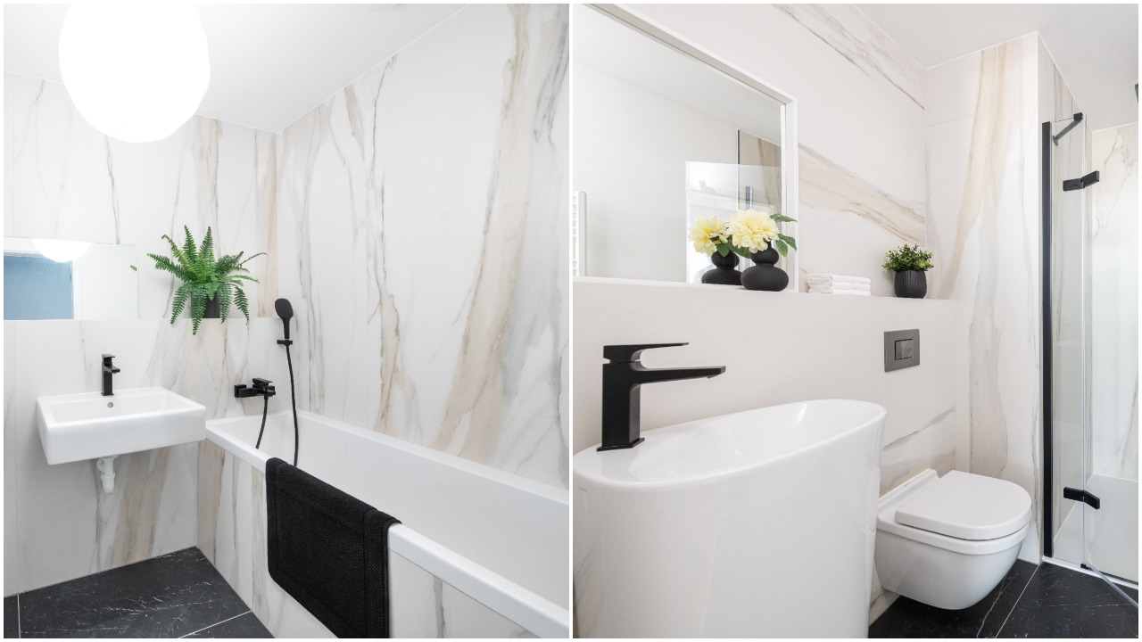 Byt disponuje aj 2 kúpeľňami, pričom v jednej z nich je sprchový kút a v druhej vaňa. Obidve tieto kúpeľne sú nadštandardne vybavené.