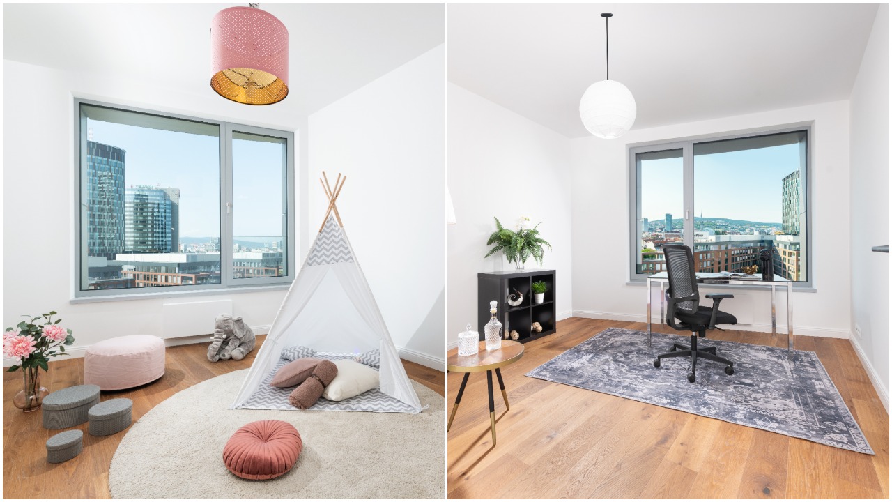 V hlavnej spálni sa nachádza vstavaná skriňa a druhá televízia. Byt disponuje aj menšou spálňou, ktorá v súčasnosti slúži ako detská izba. Niet však pochýb o tom, že sa dá prerobiť napríklad na pracovňu.