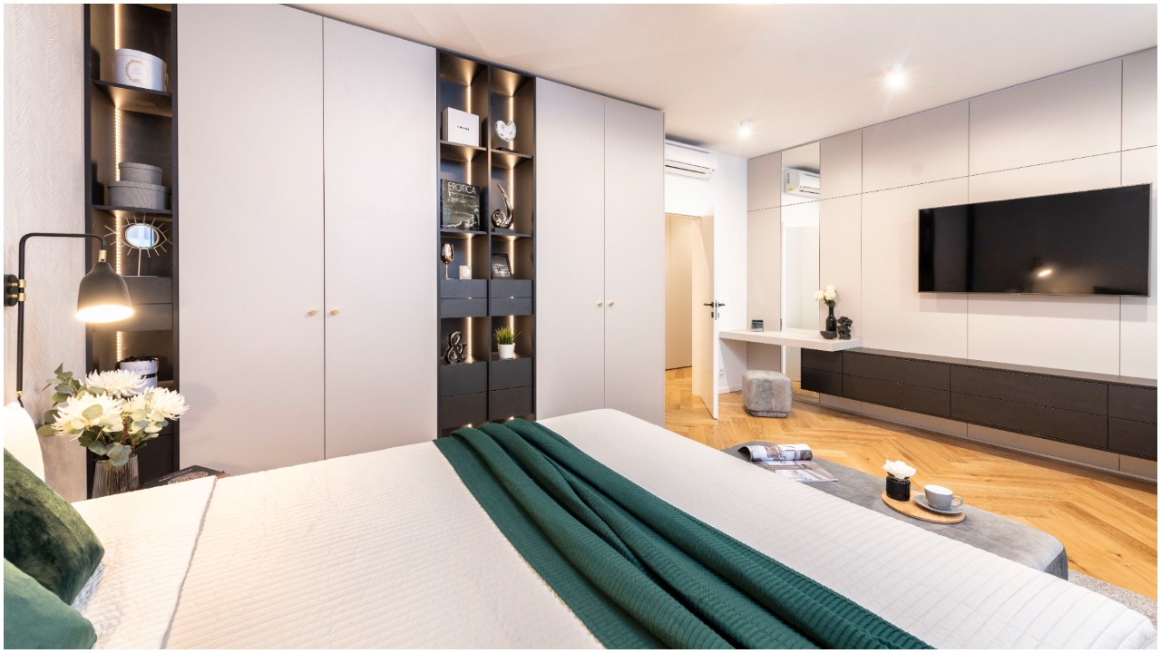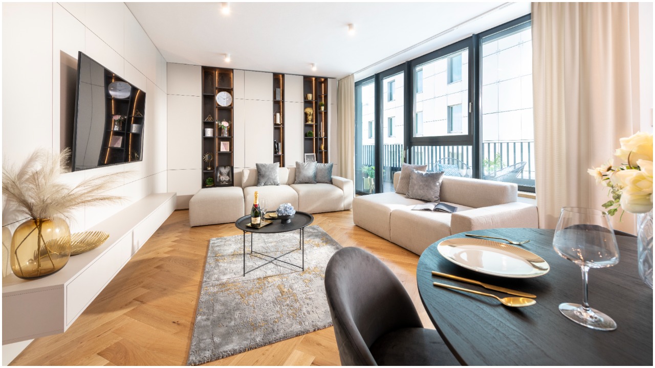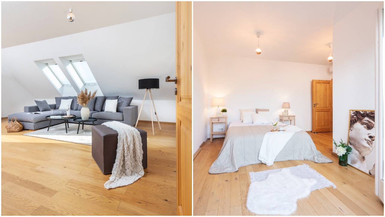 Byt na prvý pohľad pôsobí jednoducho, no to sa nevylučuje s luxusom a honosnosťou. Je po kompletnej rekonštrukcii a od úprav v ňom nikto nebýval. Nehnuteľnosť bola zariadená pomocou architektonického štúdia Studio E.