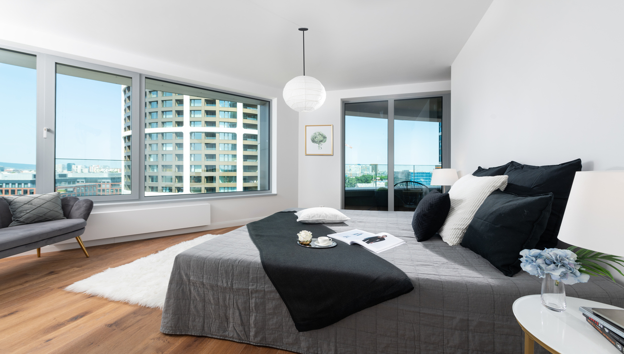 Z chodby sa dá dostať priamo do dvoch menších spální, pričom tieto miestnosti možno využiť napríklad ako pracovňu alebo detskú izbu. Hlavná spálňa je v porovnaní s týmito dvoma priestrannejšia a disponuje aj vlastnou kúpeľňou s toaletou, šatníkom a druhou loggiou. Vo všetkých spálňach sú umiestnené veľkoformátové okná, vďaka ktorým sú priestory svetlé a vzdušné.