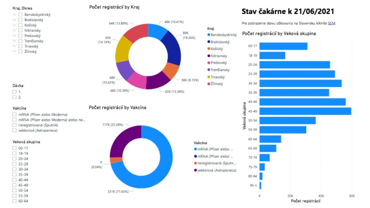 Podľa nasledujúcich grafov môžeš vidieť, že najviac ľudí čaká na registrovanú vakcínu mRNA, taktiež vo veku 45 do 49 rokov. Najviac občanov prihlásených na očkovanie sa nachádza v Bratislavskom, následne Žilinskom kraji.