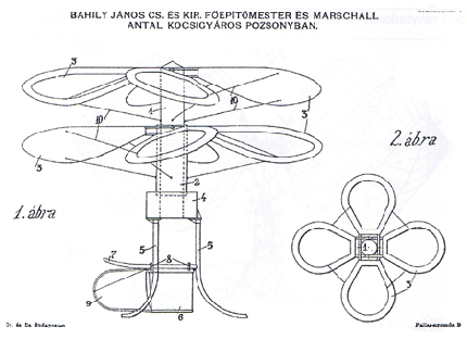 V roku 1894 úspešne zostrojil a otestoval vznášajúce sa balóny so vzdušnou turbínou, na ktoré mu boli udelené aj patenty. V pláne mal však konštrukciu vrtuľníka s dvoma stupňami štvorlistových ružíc s motorovým pohonom na benzín. Ten sa mu podarilo úspešne dokončiť v Bratislave. Ján Bahýľ následne v roku 1895 obdržal patentnú listinu č. 3392 od samotného cisára Františka Jozefa l.