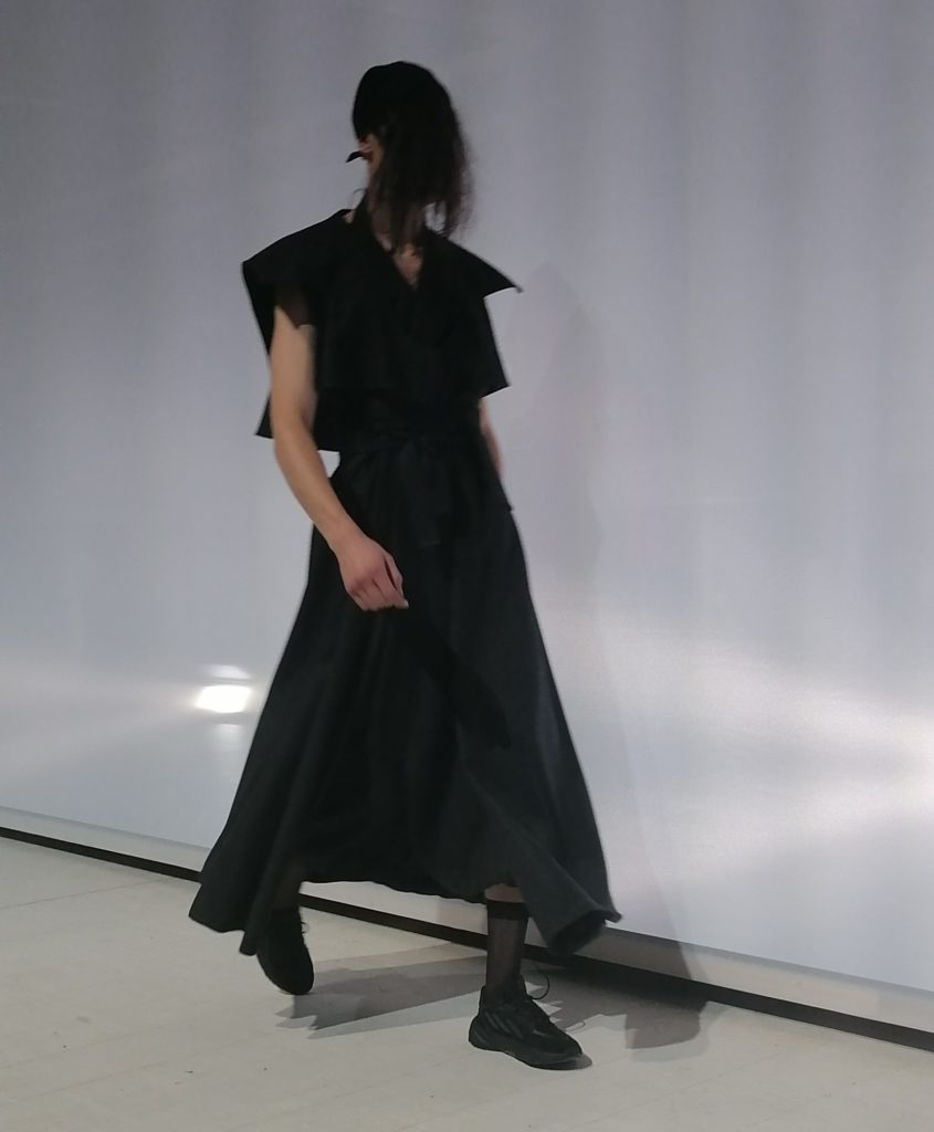 Modelky za plachtou chodili s predpaženými rukami, čo malo symbolizovať zombíkov. Tieňové divadlo tak pôsobilo unikátne. Odevy v dizajnérkinom podaní predstavovali vznešenosť a eleganciu, no napriek tomu sa na móle objavovali aj kúsky, ktoré sršali výnimočnosťou. Pri takýchto prehliadkach sú samozrejmé aj výstrelky a extravagancia, ktorá má prekvapiť oko diváka.