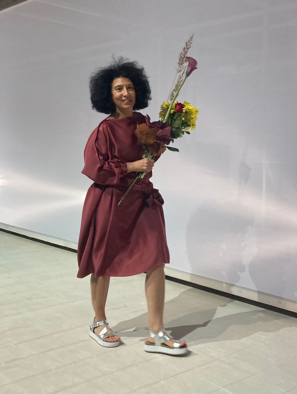 Príjemná dizajnérka sa na konci šou objavila aj na javisku. Vyslúžila si obrovský potlesk a množstvo kytíc.