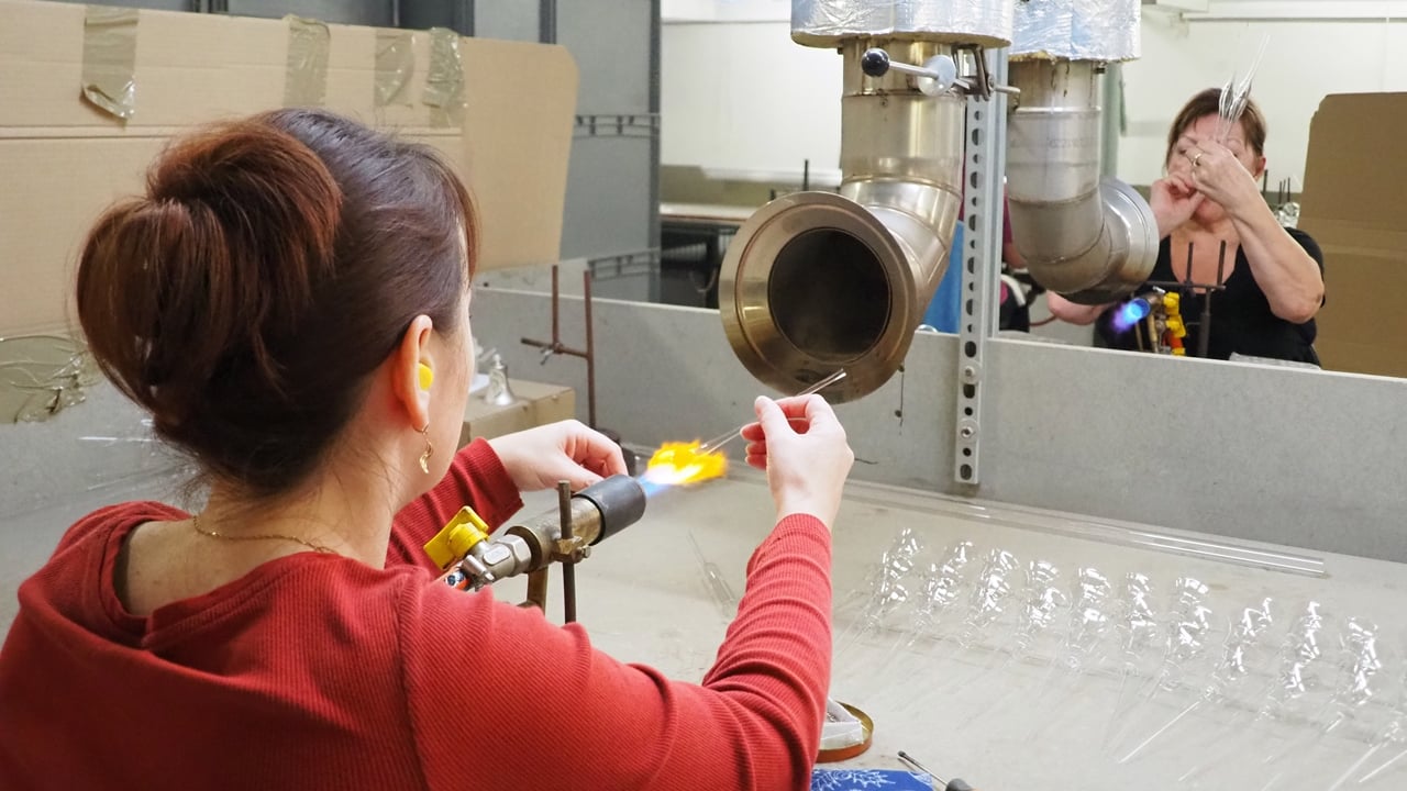 Manželia Slobodovci, ktorí firmu založili aj jej šéfujú, nám najskôr predstavili celý výrobný proces – od momentu, ako sa zo sklenej trubice pri zohrievaní vytvorí daná ozdoba, cez jej striebrenie, farbenie, až po ručné maľovanie štetcom, ktorým si prejde každá jedna, ktorú sme videli.