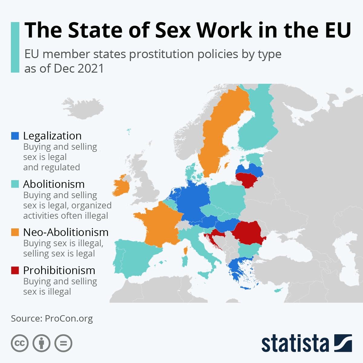Celkovo sa dá povedať, že členské štáty EÚ majú skôr zhovievavý prístup k ľuďom, ktorí dobrovoľne ponúkajú sexuálne služby za peniaze – vyplýva to z prieskumu, ktorý zverejnil známy štatistický portál Statista.