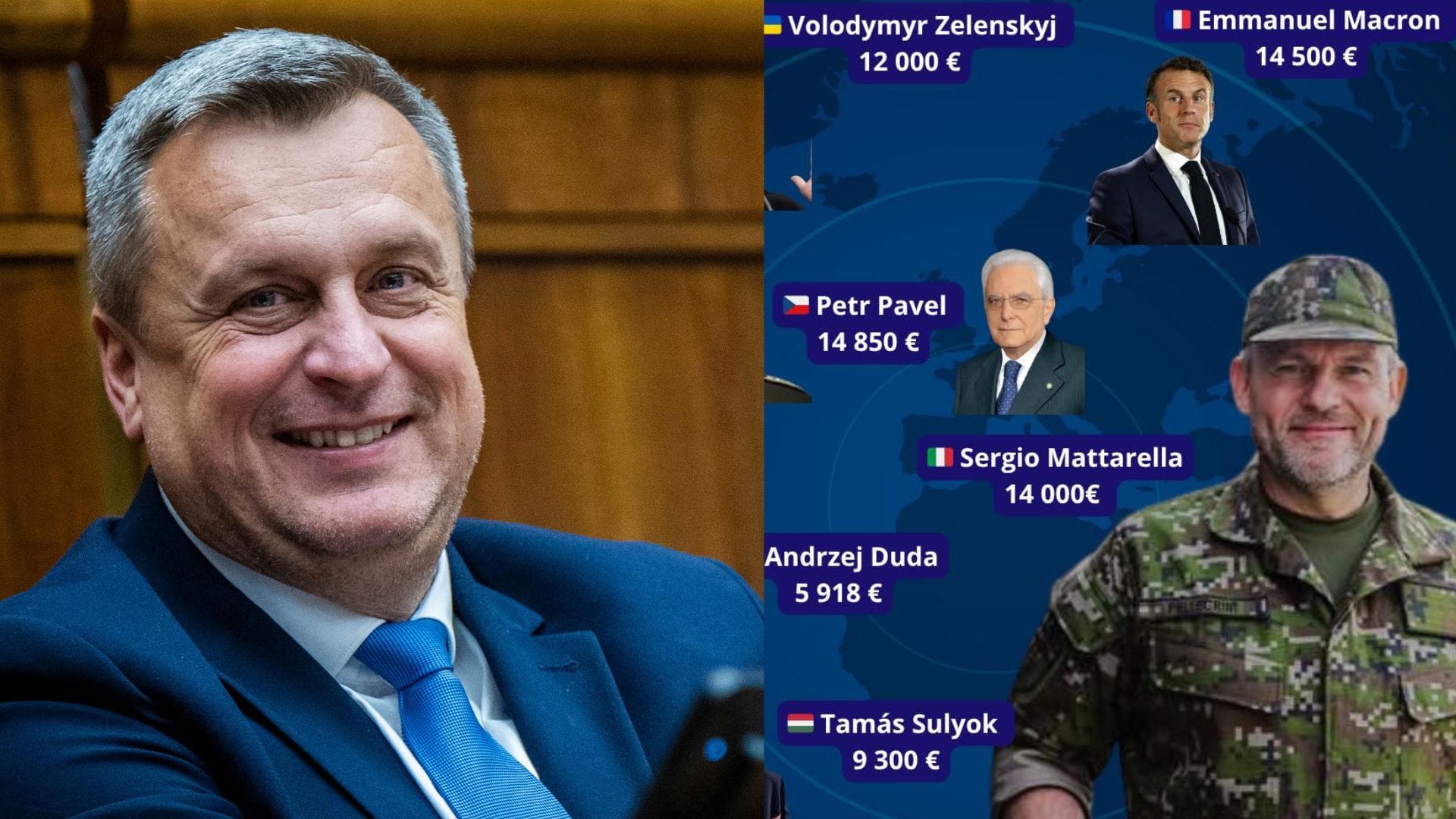 Pri francúzskom prezidentovi Macronovi je uvedená suma 14 500 eur, pri Zelenskom 12 000 eur, pri Petrovi Pavlovi je to 14 850 eur. Na grafike je znázornený aj taliansky prezident Sergio Mattarella (14 000 eur), maďarská hlava štátu Tamás Sulyok (9 300 eur), poľský prezident Andrzej Duda (5 918 eur) a napokon Peter Pellegrini, pri ktorom „svieti“ suma 18 000 eur.
