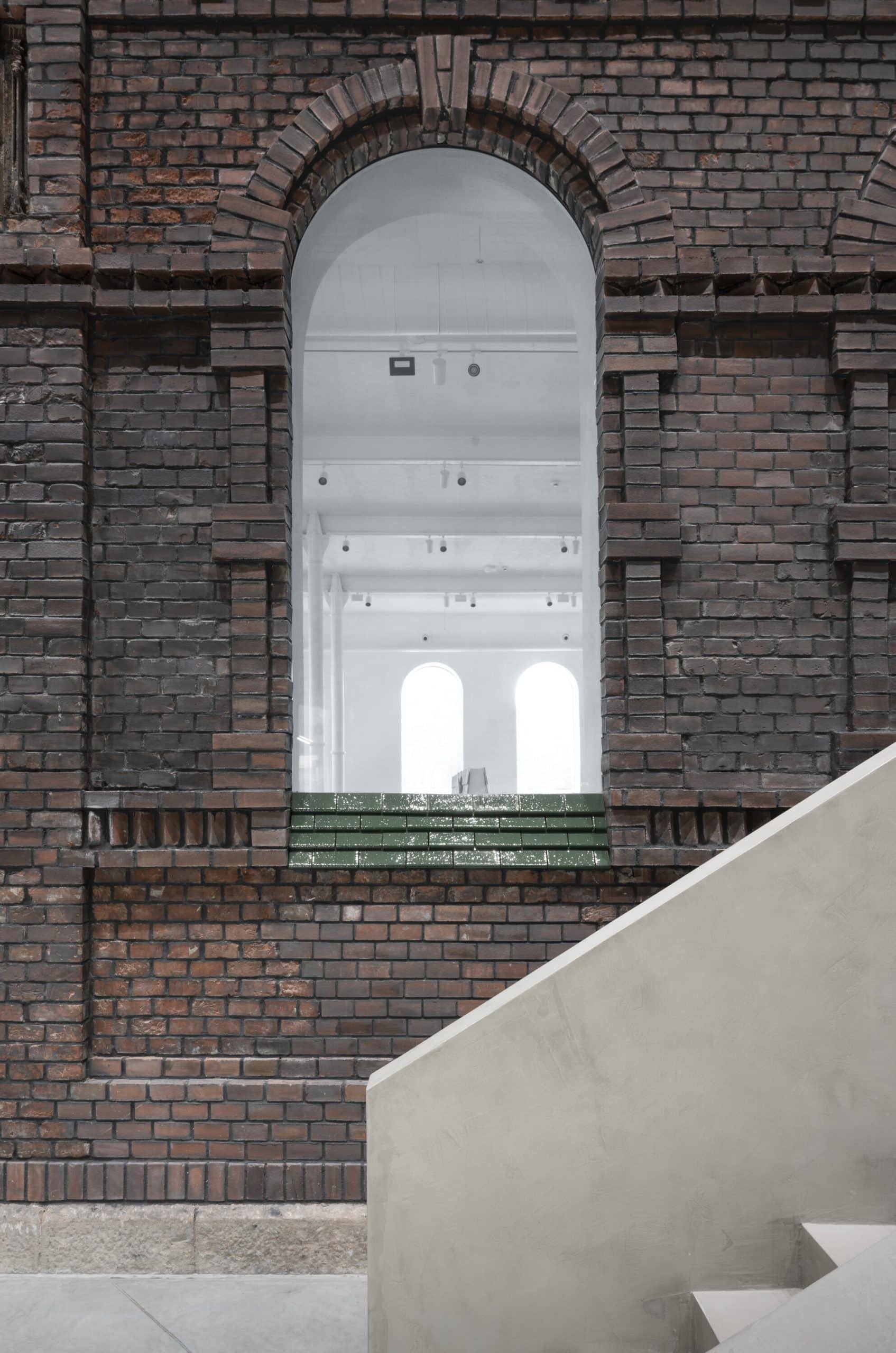 A tak, súbežne so zachovaním charakteru zašpinenej tehly a zasklenia okien, vyplnili otvory v múroch súčasným materiálom pri nadviazaní na pôvodné ozdobné členenie existujúcich tehlových múrov.