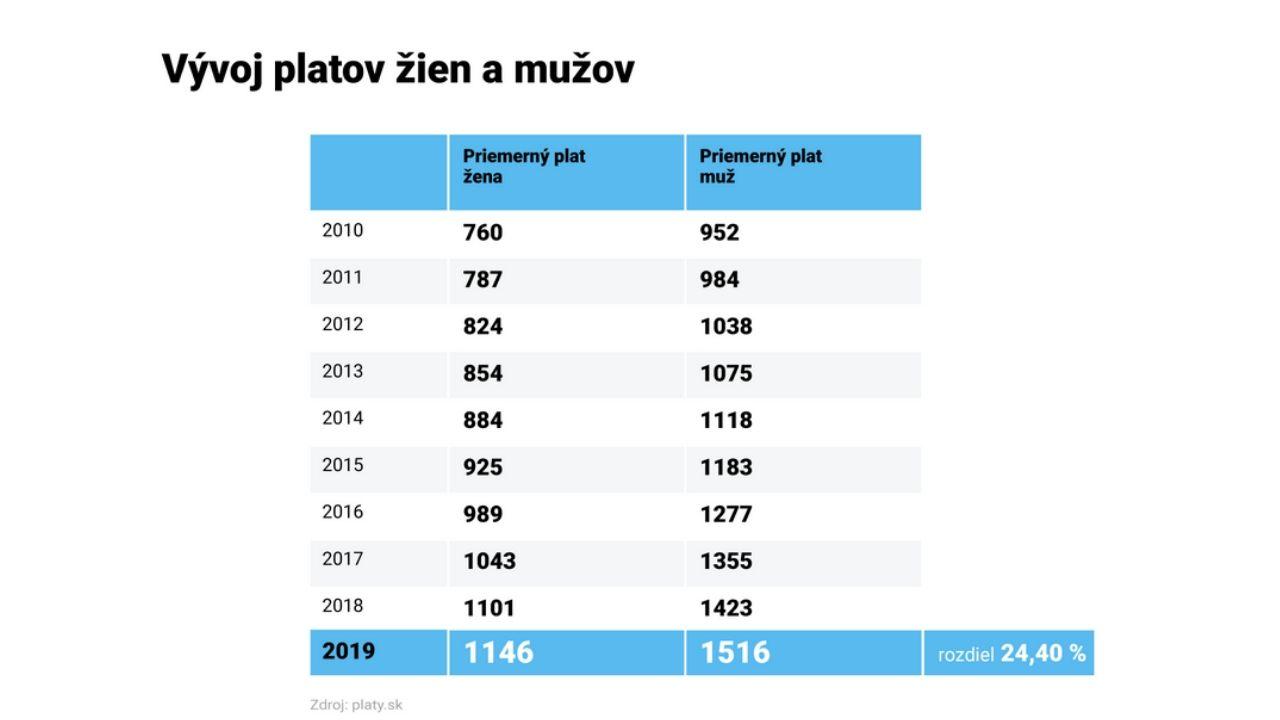 - Výška priemerných platov žien sa v našej krajine dlhodobo drží na nižšej priečke