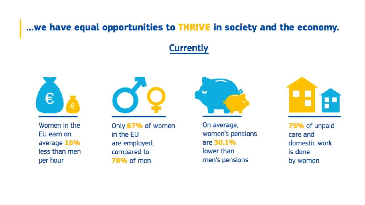 V roku 2020 bolo prijaté nové znenie stratégie pre dosiahnutie rodovej rovnosti. Predsedníčka Európskej Komisie Ursula von der Leyen sa vyjadrila: „Rodová rovnosť je principiálnym jadrom Európskej Únie, ale nie je jej realitou. V podnikaní, politike a celkovo spoločnosti môžeme využiť svoj skutočný potenciál iba vtedy, keď využijeme všetkých ľudí, ich potenciál a rôznorodosť. Použiť iba polovicu ideí a energie nie je efektívne.“