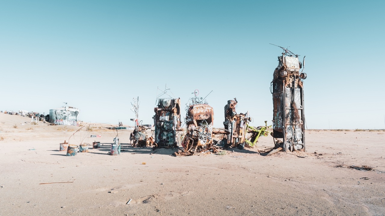 Slab City je známe ako mesto umelcov, ktorí sem prichádzajú tvoriť. Ich kreatívnym a občas podivným dielam sa tu nekladú žiadne medze. Miestne „galérie“ s umením majú aj svojich kurátorov, ktorí ťa nimi veľmi radi prevedú.