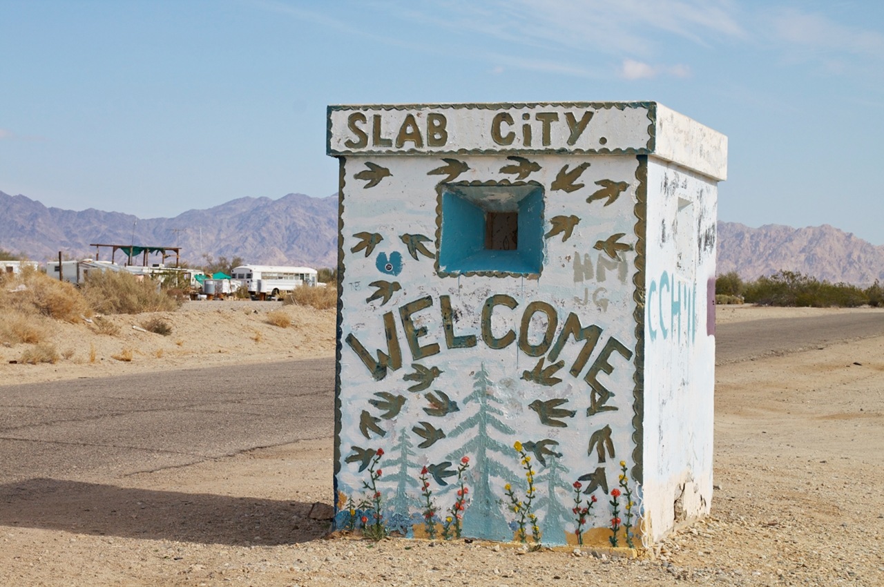V Sonorskej púšti v americkom štáte Kalifornia, vyše dve a pol hodiny jazdy autom od mesta anjelov Los Angeles smerom na juhovýchod k mexickým hraniciam, nájdeš mestečko Slab City.