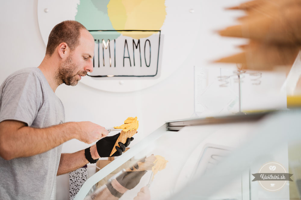 Mlieko, smotanu, ajovocie máme lokálne a sezónne, z kvalitných zdrojov. Okrem manga, samozrejme, ktoré u nás nerastie, to dovážame v podobe 100% pyré z Indie. Čokoládovú zmrzlinu pripravujeme z belgickej čokolády, pravú chuť orieškov cítite vďaka lieskovcom z talianskej oblasti Piemonte, pistácie máme z preslávenej oblasti Brontë. Kornúty sú tiež z Talianska, ten rozdiel oproti obyčajným tam naozaj cítiť a ja ľuďom rád doprajem pravú chuť.