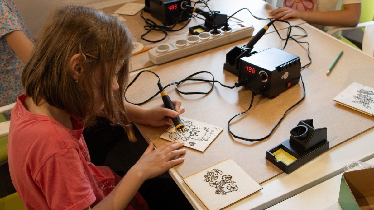 Pyrografia – vypaľovanie do dreva: Kreatívny workshop zameraný na tradičnú techniku vypaľovania do dreva, ktorý rozvíja jemnú motoriku a umelecké cítenie.