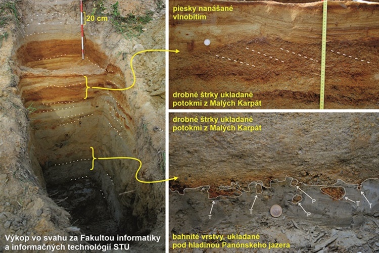 Pracovníci katedry geológie a paleontológie z UK vykonali výkopové práce vo svahu univerzitného kampusu v Mlynskej doline. Pozorovali striedanie bahnitých vrstiev uložených pod hladinou Panónskeho jazera, vrstiev piesku nanášaných vlnobitím a vrstiev drobného štrku ukladaných potokmi ústiacimi z Malých Karpát, ktoré tvorili sústavu ostrovov.