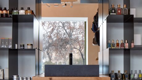Mobiliár je jednoduchý, no perfektne spracovaný, s využitím len niekoľkých kvalitných materiálov. Tento prístup nielen zdôrazňuje kvalitu predávaného tovaru, ale aj vytvára príjemné nákupné prostredie.