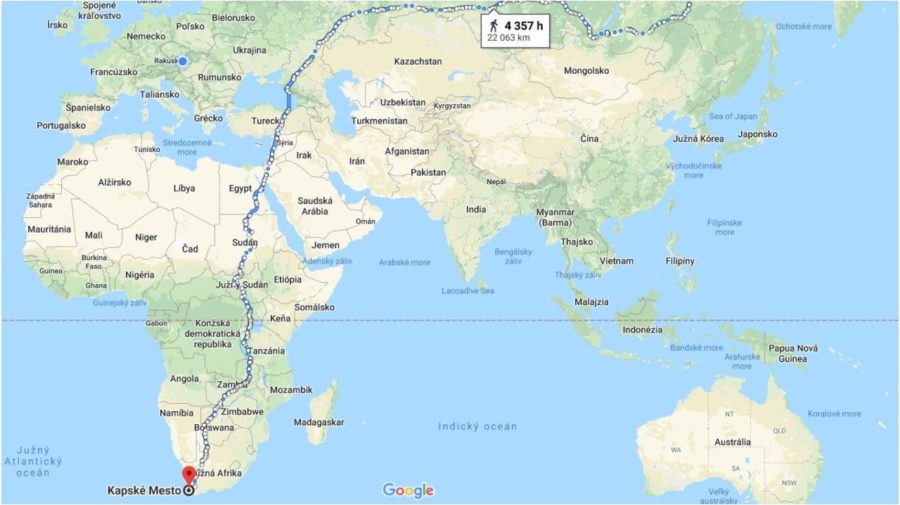 Podľa Google máp to vyzerá, že ak budeš kráčať 187 dní bez prestávky, mal by si v pohode doraziť do cieľa. Je jedno, kde začneš, či v Rusku alebo na juhu Afriky. Čas je stále rovnaký. Do odhadu však nie je započítaný spánok ani iné prestávky na oddych či občerstvenie. Pre upresnenie, ide o 4 357 hodín vytrvalej pešej turistiky.