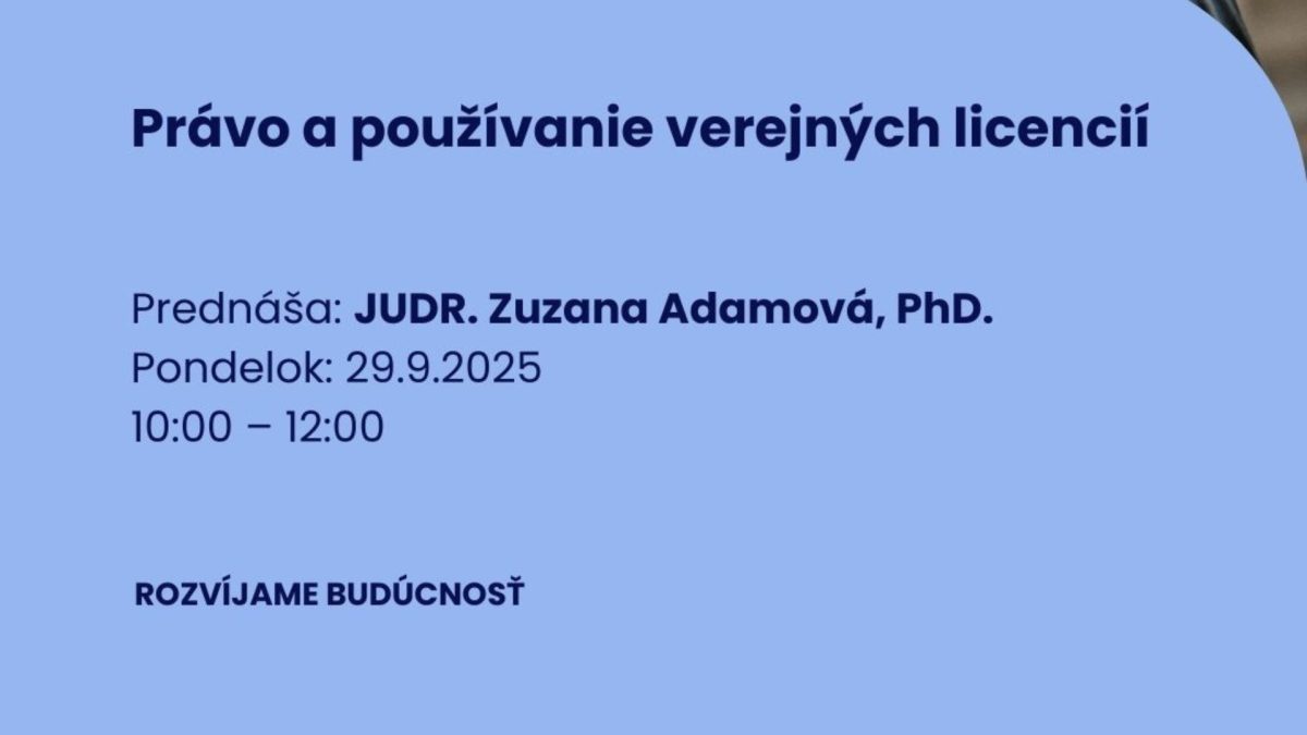 - september 2025, 10:00 – 12:00Právo a používanie verejných licencií
